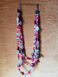 La collana è a più fili con perle di diverse forme e dimensioni, che creano un effetto vivace e originale.