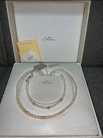 Collana di perle Oriente a scalare con tre sfere in oro bianco diamante con chiusura d'oro bianco+Bracciale di perle Oriente a scalare con tre sfere in oro bianco diamante con chiusura d'oro