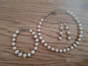 Coordinato collana, bracciale e orecchini fatti a mano di perle di fiume! Ottima qualità.