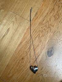 In vendita una splendida collana originale Breil, appartenente all'iconica collezione che gioca sul contrasto delle finiture. Il pendente ha una forma a cuore bombato dal design asimmetrico e moderno, caratterizzato da una doppia lavorazione: una metà è in acciaio lucido a specchio (con logo Breil inciso lateralmente), mentre l'altra metà presenta un'elegante finitura satinata/spazzolata. È un gioiello versatile che unisce lo stile "industrial" tipico del brand a una forma romantica.