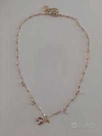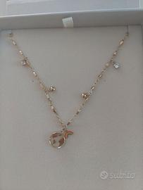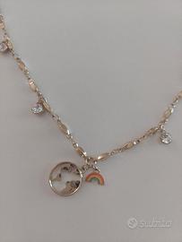 Collana girocollo in acciaio 316L e finitura pvd oro 14K con pendenti a forma di mondo, arcobaleno con smalti colorati e cristalli. Lunghezza Collana: 440mm