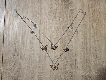Collana donna/ragazza Brosway. Collana doppia in argento con pendenti a forma di farfalla, ciondolo centrale in argento rose gold. Nuovo, con confezione originale (scatola e bustina) ideale per un regalo. Vendo per inutilizzo.