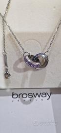 Collana Brosway con doppio ciondolo, uno con pietre viola e uno con pietre blu.