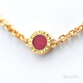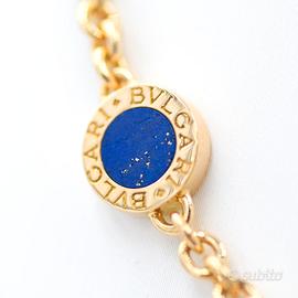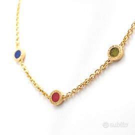 Iconica collana della collezione Bulgari Bulgari in oro giallo 750 dal peso di 22,2 grammi, arricchita da pietre naturali come giada, corallo e lapis.