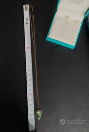 Collana con ciondolo a forma di arpa celtica, simbolo dell'Irlanda, ispirata al 'Libro di Kells', decorato con smalto blu e verde e nodi celtici.