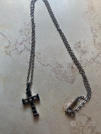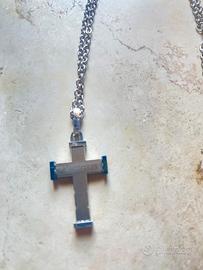 Collana Cesare Paciotti in acciaio con brillantini su un lato e scritta paciotti sull’ altro, mai utilizzata