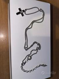 Collana da uomo realizzata in acciaio anallergico. Croce pendente con zirconi neri e bianchi.