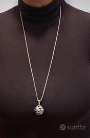 Cerchi un regalo speciale o un accessorio che unisca eleganza e significato? Vendo splendida collana "Chiama Angeli" con ciondolo sonoro, simbolo di protezione e armonia. Il ciondolo emette un suono dolce e delicato ad ogni movimento, perfetto per accompagnare le giornate con un tocco di serenità . 💎 Dettagli del Prodotto: Stato: Nuova (indossata solo per scattare le foto dell'annuncio). Materiale: Acciaio Inossidabile (Inox) di alta qualità – non scurisce, è anallergico e mantiene la brillantezza nel tempo. Design: Ciondolo a sfera con lavorazione traforata a motivi floreali/sinuosi, molto raffinato. Misure: Lunghezza catena: 80 cm (cade elegantemente sul decolleté). Diametro ciondolo: 2,5 cm. Chiusura: Pratico e sicuro moschettone. Questa collana è ideale come idea regalo per una futura mamma (secondo la tradizione) o semplicemente come accessorio boho-chic per completare il tuo outfit quotidiano. La catena lunga e il design in acciaio la rendono versatile e resistente.