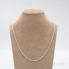 Collana Chimera in argento 925 lunga cm 45. La lavorazione è un torciò e si può indossare sia da sola che con un ciondolo. Prodotto made in Italy munito di marchio di fabbrica come da legge e completo di confezione e certificato di qualità rilasciato dalla Gioielleria.