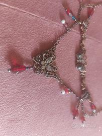 collana choker con farfalle e pietre bordeaux e nere con orecchini abbinati VENDO PER MANCATO UTILIZZO