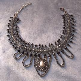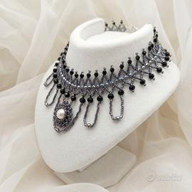 Collana Choker Nera Stile Vittoriano Perla Fiume
