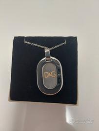 Collana con ciondolo a doppia medaglietta in acciaio con logo D&G molto leggera e delicata.