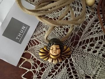 Collana con ciondolo Thun, ceramica e piattina scamosciata. Chiusura regolabile tramite cursori in ceramica.