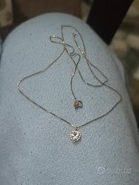 Collana in oro giallo 375 con cubic zirconia, collezione Claire. Ciondolo a forma di cuore e collier molto sottile, elegante e delicato. Ideale per ogni occasione. Senza scatola
