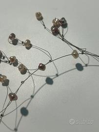 Collana coccinelle filo in acciaio e perle naturali colore rosa e bianco