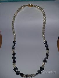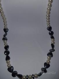 Collana bicolore Collana bicolore color avorio e nero perlato, chiusura a incastro dorata lunga 30 cm. ( ART. BIGIOTTERIA ) In ottime condizioni .