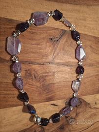 Collana di ametista, cristallo di rocca. Chiusura a calamita, argento. Lunghezza 56 cm ; 144 grammi. Pietre originali , fatta a mano .