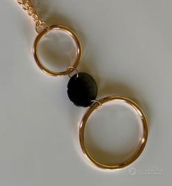 Collana con 2 anelli di dimensioni diverse uniti da un disco nero