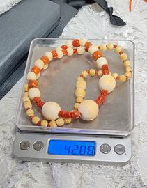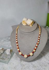 collana di avorio anni 1960 reinfilata con intermezzi di corallo Sciacca e di Sardegna .