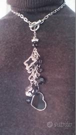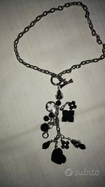 Vendo bellissima collana di bigiotteria nuova, mai indossata, in acciaio con gancio a T e dall'anello di chiusura partono una serie di charms argentati e neri di varie forme e misure. Lunghezza tot della sola catena aperta cm 40 (al collo diventa di 20 cm) e del gruppo pendente cm 12 tot. Prezzo eu 20 leggermente trattabile. Per vederla e/o provarla scrivete all'indirizzo mail indicato.