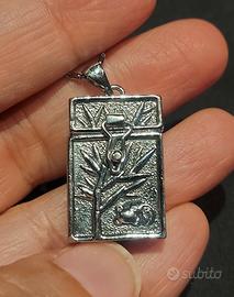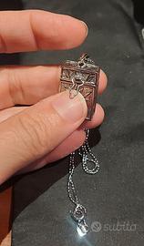 Non è comunque ossidabile né appunto la catenina e né il ciondolo dato che ce l'ho da parecchi anni ormai ed entrambi sono lucidissimi e brillanti come quando li ho acquistati. Il ciondolo è a forma di bauletto e si apre come potete vedere nelle foto. Può contenere anche delle piccole fotografie o quello che ritenete più opportuno. La chiusura è molto sicura e tiene molto bene. Lo vendo perché non l'ho mai utilizzato ed è nuovissimo. Ce l'avevo ancora nella sua confezione e l'ho tolto solo ora per fare le foto. Ha una leggera intaccatura a sinistra come da foto ma mi è arrivato così e dato che è un prodotto fatto a mano ci può stare. Ripeto che non si ossida. Lo invio in un elegante sacchettino ed è perfetto per un regalo. Per qualsiasi altra info sono a vostra disposizione.