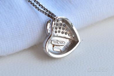 In vendita collana con ciondolo a forma di cuore, tutto in argento 925 e cristalli.