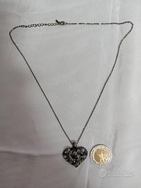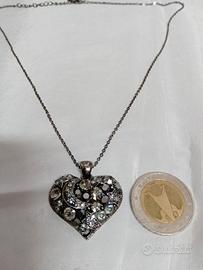 Collana con ciondolo a Cuore di cm 3 per cm 2,5 con cristalli swarovski dalle svariate sfacettature e catenina fine di cm 48 . Metallo anallergico. Mai indossato in confezione originale con certificato. Marca SC Jewels.