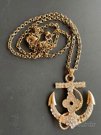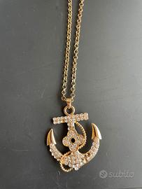 Luminosa collana rifiniture oro e strass, con motivo Ancora. manca qualche strass ma nel complesso non si nota. #ancoramarina #ancora