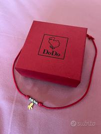 Collana con ciondolo Dodo polpo originale in oro giallo 18Kt 750 fuori produzione completo di cordino cotone color rosso originale e 4 granelli argento 925