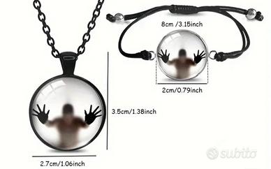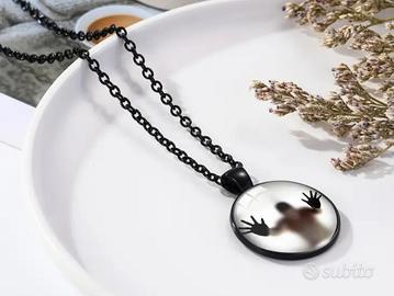 Bellissima collana con ciondolo a forma di fantasma. - Il ciondolo è di colore bianco e nero. - La collana è realizzata in argento. - Perfetta per un look misterioso ed elegante.