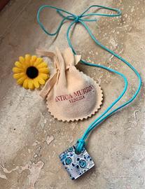 Vendo collana con ciondolo a forma quadrata in pregiato vetro di Murano firmata Antica Murrina.