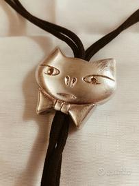 Questa è una collana con ciondolo a forma di gatto e cuore