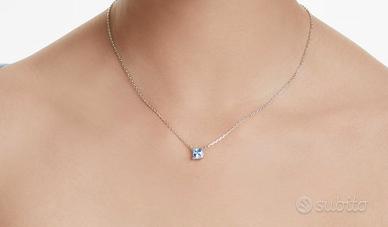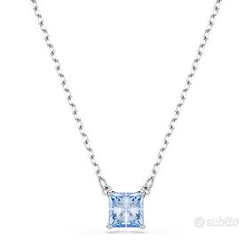 Pendente MatrixTaglio squadrato, Blu, Placcato rodio.Con la sua intrigante sfumatura di colore blu, questo pendente cattura sempre l’attenzione. Il design placcato rodio presenta una Swarovski Zirconia taglio Square con una raffinata montatura a griffe doppia, mentre la catena allungata è completata da un gancio a moschettone. Indossa questo pendente con un paio di orecchini a lobo abbinati per massimizzare l’eleganza.