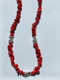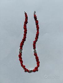 Collana in acciaio inossidabile con coralli rossi, dettagli in acciaio e chiusura in argento 925.