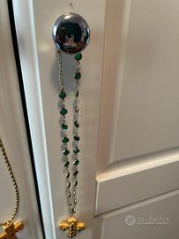 Collana in metallo dorato pietre verdi e croce in pasta dorata con pietre verdi fatta a mano nuova regslo non gradito
