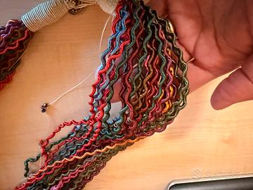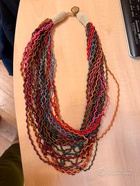 Collana con fili in seta/raso multicolore adattabile a qualsiasi abito con chiusura a bottone molto originale leggera