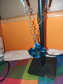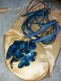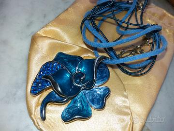Collana vintage con fiore con smalti firmata con piastrina mai usata