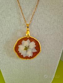 collana in acciaio Inossidabile ciondolo in resina e fiori essicati