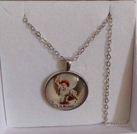 Bellissima collana con ciondolo a medaglia raffigurante l'Arcangelo Michele.