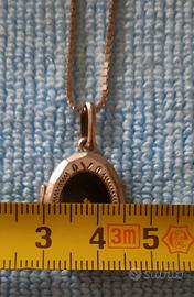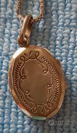 Antico medaglione portafoto in argento 925 e onice intarsiata con catena a maglia veneziana (recente) di lunghezza totale cm.48/49.