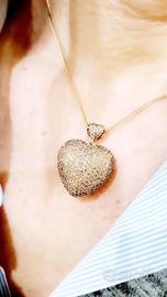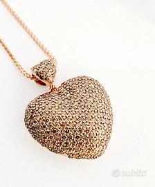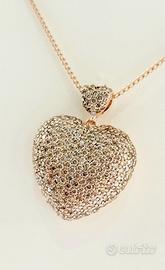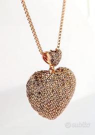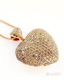 Collana con ciondolo pendente a forma di cuore bombato lavorato in Oro Rosa 18kt-750- Grammi 13,14 e Diamanti ligh brown taglio brillante con certificazione gemmologica GEM- TECH N: 386952