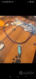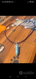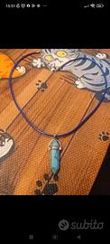 Collana con pendente esagonale in pietra Turchese naturale proprietà:La turchese stimola l'intuizione e la percezione della propria unità psico-fisica, equilibrando tutte le polarità (maschile e femminile) e i dualismi (corpo e spirito). Potenzia le abilità di espressione creativa e la forza della comunicazione attraverso I'uso della voce.laccio colore blu,bellissima estetica.Necklace with hexagonal stone pendant Natural turquoise properties: Turquoise stimulates intuition and the perception of one's own psycho-physical unity, balancing all polarities (masculine and feminine) and dualities (body and spirit). It enhances creative expression and the power of communication through the use of the voice. Blue lace, beautiful appearance.