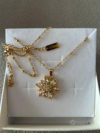 Collana con pendente fiore e strass S.Steel