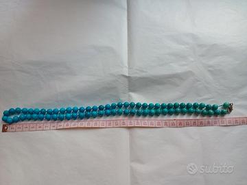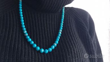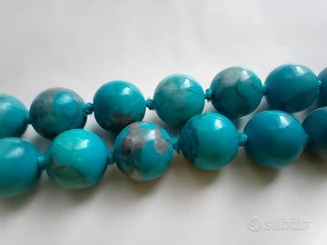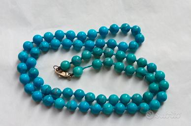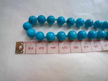 Vendo per il solo valore del turchese naturale in quanto la collana va rinfilata e cambiata la susta in metallo. Mi è stato detto essere turchese naturale cinese che tende al verde e che il valore attuale si aggira ai €200,00 della collana. Lunga da chiusa 32 cm. Peso totale 54 grammi. Nelle foto i cm. disponibile per altre foto. Transazione tra privati con formula "visto e piaciuto" ed esclusione di recesso e garanzia.