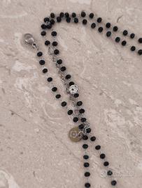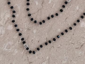 Elegante collana con perline nere e dettagli luminosi.