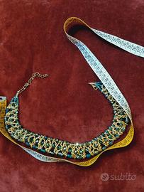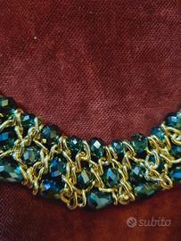 Collana con perline verde, di base colore d'oro. Lunghezza 39 cm. Nuova, senza cartellino. Molte elegante e brilla tanto. Zona Esquilino, Roma.