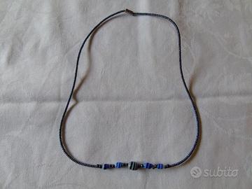 Collana con pietre e perline azzurre e blu, fermaglio a vite, cm 45. Nuova mai usata.