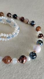 Collana artigianale con pietre naturali e sfere in resina, composizione unica di fantasia prodotta a mano.