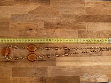 Collana con elementi in resina che imitano l'ambra, impreziosita da dettagli dorati.