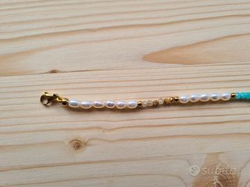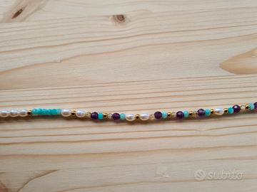 Perle d'acqua dolce rice premium Quality bianche 4-5 mm e pietre naturali (quarzo mm ø 3, ametista sferica sfaccettata mm ø 4, amazzonite a rondella ø mm 3-3,5.